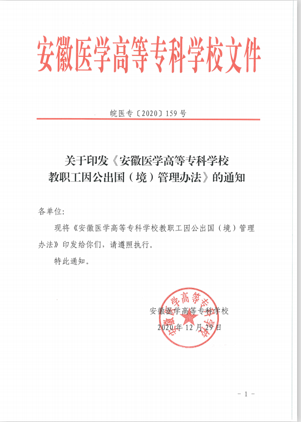 安徽医学高等专科学校教职工因公出国(境)管理办法