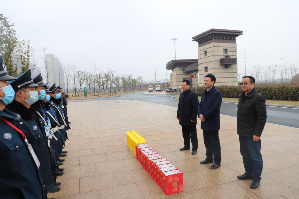 校领导前往学校警卫室等地,亲切慰问在岗人员,详细了解值班安排及设备运行等情况,并叮嘱他们在岗期间要严格落实疫情防控要求,认真履职尽责,全力保障好寒假期间留校师生的安全,确保校园平安祥和。