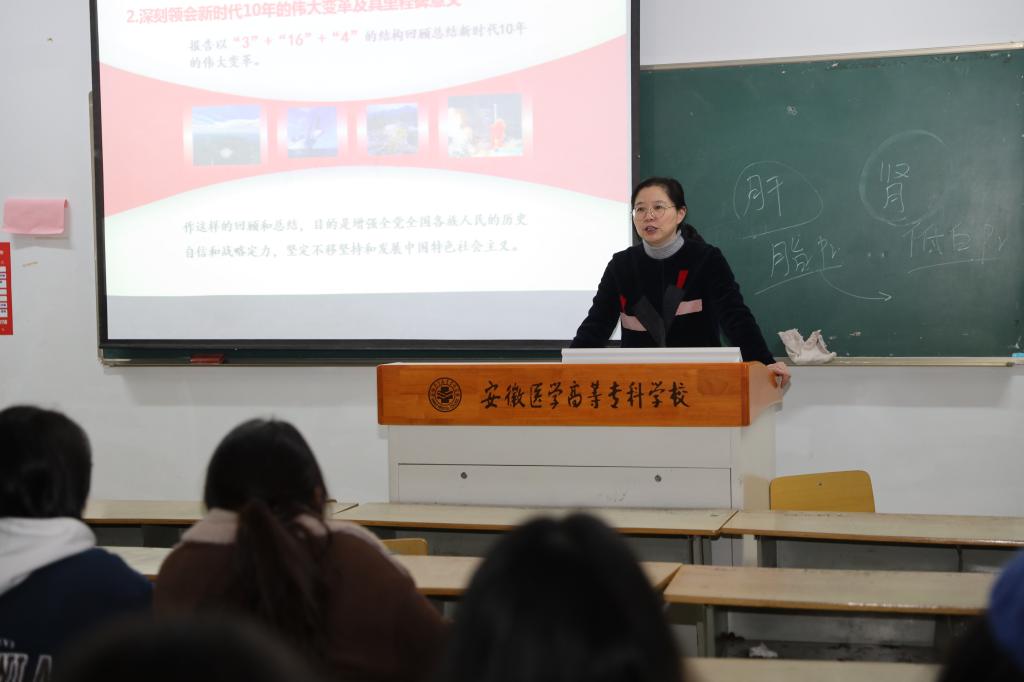 校领导表示,习近平同志的报告,深刻阐释了新时代坚持和发展中国特色社会主义的一系列重大理论和实践问题,描绘了全面建设社会主义现代化国家、全面推进中华民族伟大复兴的宏伟蓝图,为新时代新征程党和国家事业发展、实现第二个百年奋斗目标指明了前进方向、确立了行动指南,是党和人民智慧的结晶,是党团结带领全国各族人民夺取中国特色社会主义新胜利的政治宣言和行动纲领,是马克思主义的纲领性文献。《中国共产党章程(修正案)》体现了党的十九大以来党的理论创新、实践创新、制度创新成果,体现了党的二十大报告确定的重要思想、重要观点、重大战略、重大举措,对坚持和加强党的全面领导、坚定不移推进全面从严治党、坚持和完善党的建设、推进党的自我革命提出了明确要求。