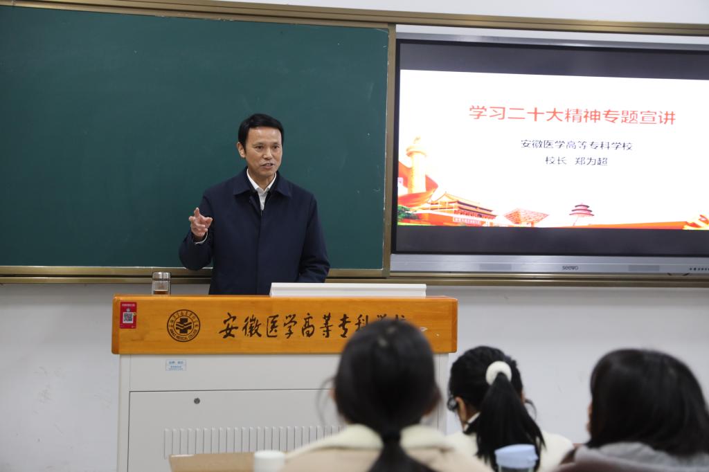 为引导广大师生员工把思想和行动统一到党的二十大精神上来,把智慧和力量凝聚到党的二十大确定的各项任务上来,11月30日,学校党的二十大精神宣讲团开展宣讲。宣讲团团长,党委书记董亚杰,党委副书记、校长郑为超;宣讲团副团长,党委副书记、副校长王劲松,党委委员、副校长王润霞、严继贵,党委委员朱霖、汪长如,深入教学一线,面向学生开展党的二十大精神宣讲。