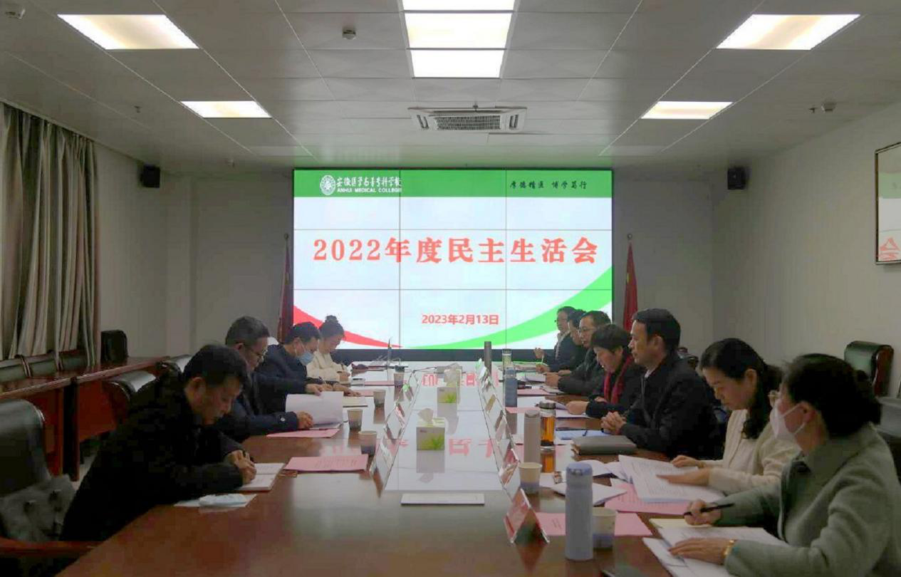 2月13日下午,按照省卫生健康委党组统一部署,学校召开2022年度党委领导班子民主生活会。省卫生健康委一级巡视员董明培到会指导。校党委书记董亚杰,党委副书记、校长郑为超,校党委副书记王劲松,校党委委员、副校长王润霞、严继贵,校党委委员朱霖、汪长如参加会议。会议由董亚杰主持。