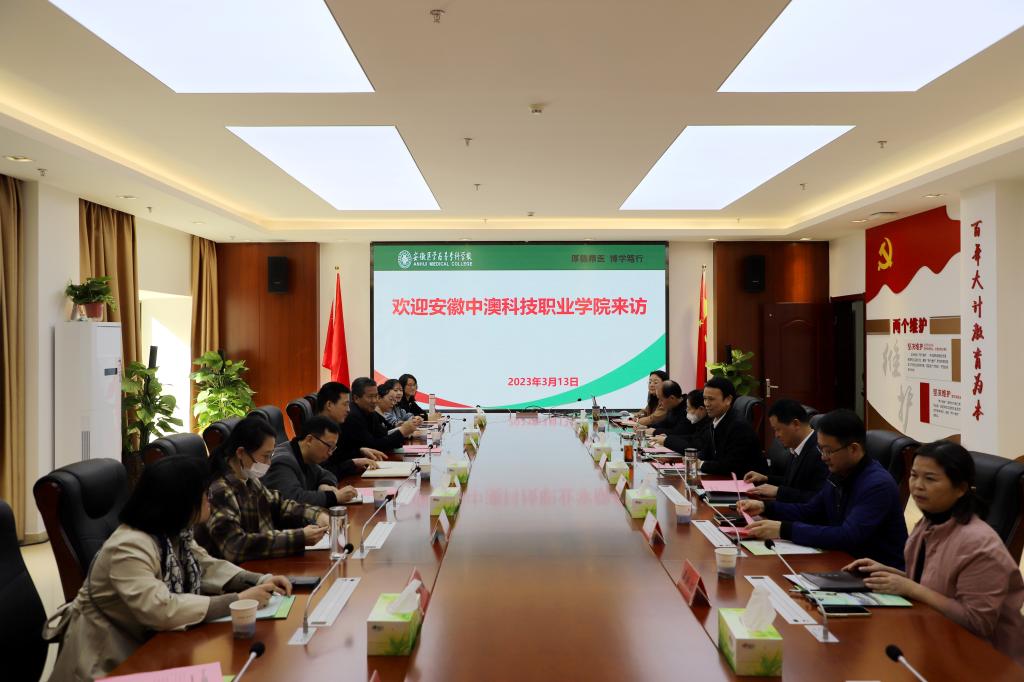 王德润表示感谢,在介绍了学校办校历史、改革发展情况及目标愿景等后表示,安徽医学高等专科学校办学历史悠久、办学实力雄厚、办学特色鲜明,人才培养质量得到社会各界广泛认可,尤其是新校区建设进展快、质量优,希望双方加强合作,互通有无、优势互补,共谱职业教育发展新篇章。