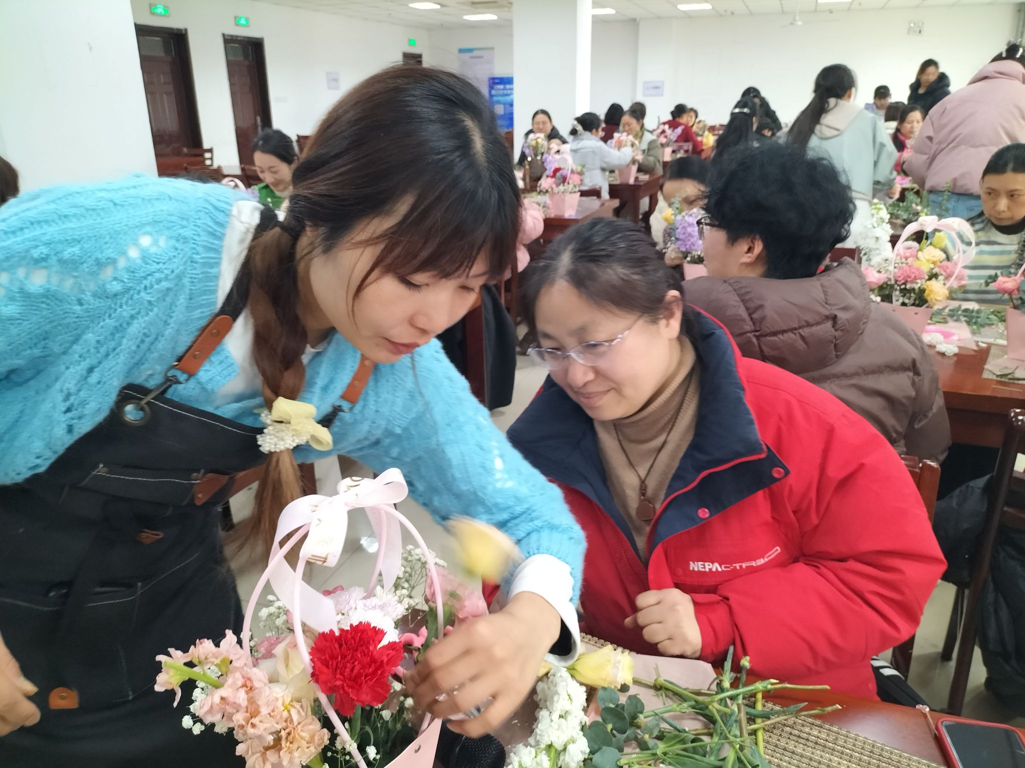 3月7日下午,“花艺润心,芳华绽放”插花活动在芙蓉路图书馆一楼自习室温馨开展。活动现场,专业花艺师带来花艺知识讲座,从花材识别、色彩搭配、造型设计到养护技巧进行细致讲解。女教职工们动手实践,修枝剪叶、错落搭配,将玫瑰、康乃馨、桔梗等鲜花插成独具匠心的花艺作品。在花香与笑语中,大家舒缓身心、陶冶情操,以指尖繁花定格节日美好。