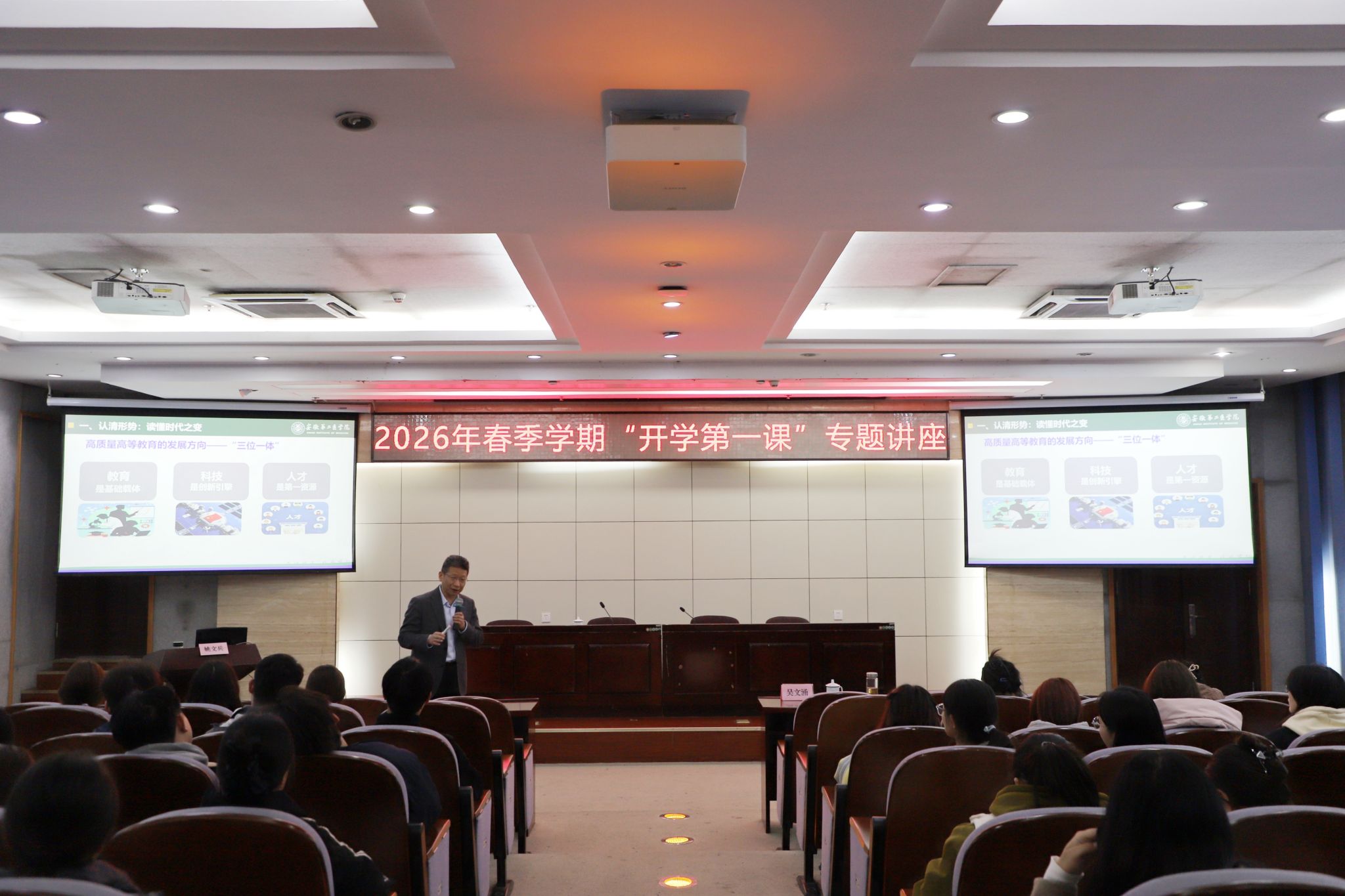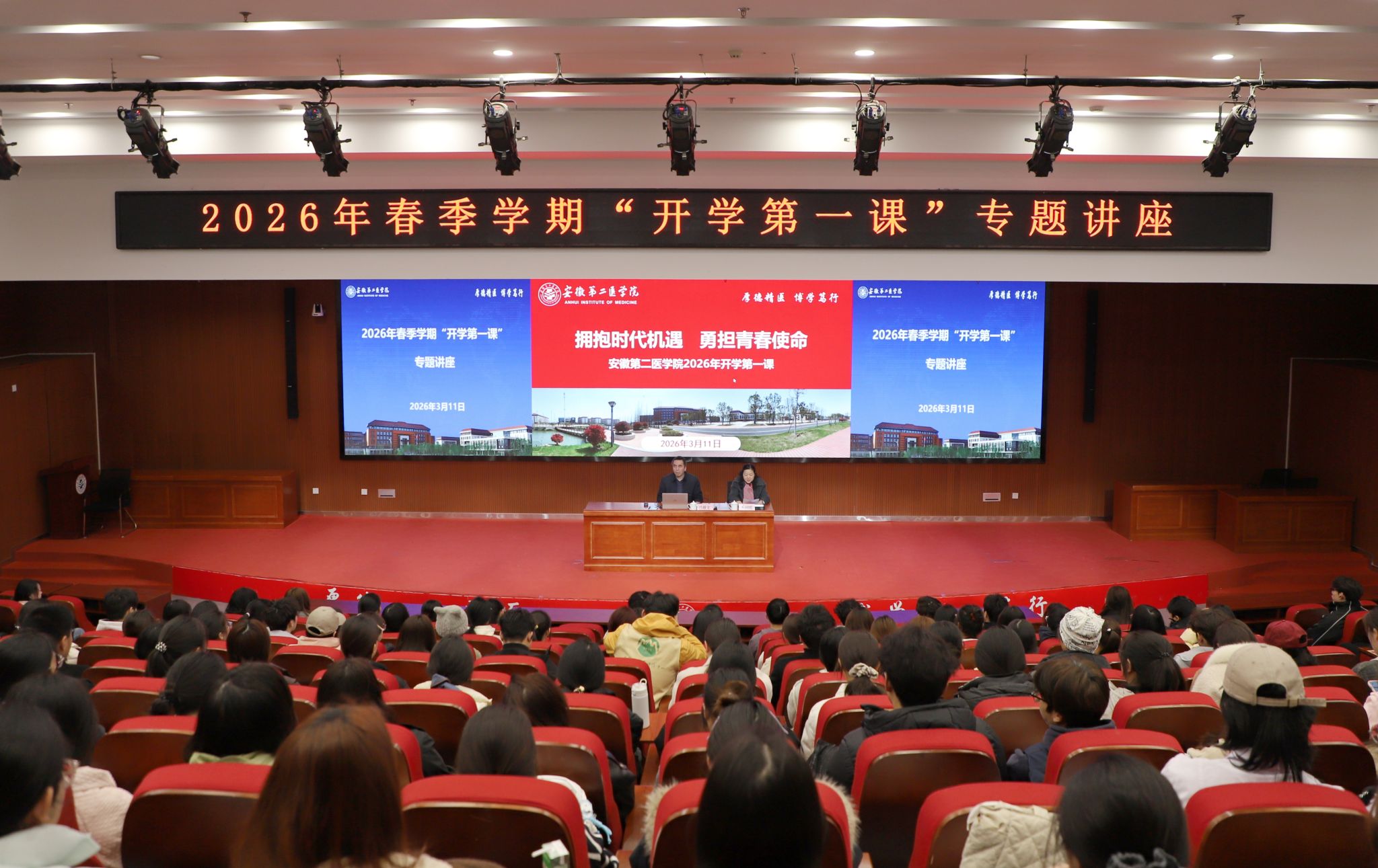 春回大地,万象更新,为深入落实立德树人根本任务,扎实推进“大思政课”建设,引导青年学子将个人理想融入国家发展大局,3月11日,校党委书记姚文兵,校党委副书记、院长吕雄文走上讲台,以“拥抱时代机遇 勇担青春使命”为主题,为全校学子讲授春季学期“开学第一课”,为青年医学生的成长成才指引方向、凝聚力量。校领导吴文涌、王润霞主持讲座。