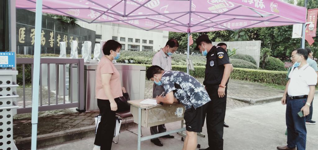 为督促做好学校2021年秋季学期开学疫情防控工作,确保开学平稳、顺利、有序,根据学校2021年秋季开学疫情防控工作方案和近期工作安排,8月26日,校党委副书记、纪委书记刘东义率监察审计处、效能办、防控办负责人深入新桥校区、芙蓉路校区校园开展疫情防控工作监督检查。