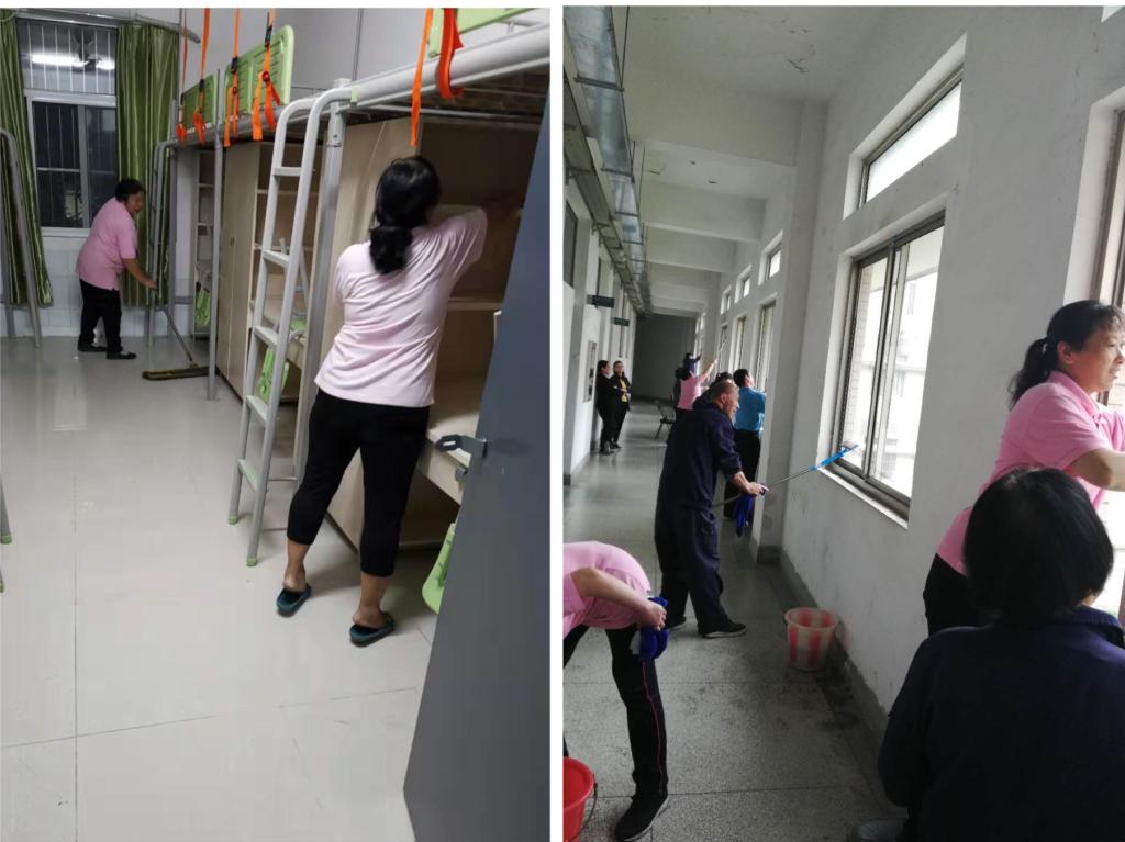 (芙蓉路校区后勤工作人员在做好各项准备)