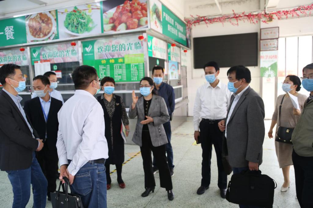 听取汇报后,检查组一行查阅了相关资料,并实地检查了学校学生食堂、宿舍、防疫物资储备室、医学观察区等重点区域。