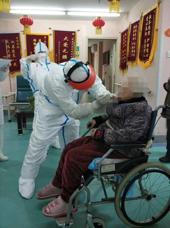 一个房间又一个房间,一层楼又一层楼,当汗水早已湿透防护服里的衣服,当酸软的胳膊轻轻搀扶起一个又一个卧床的老人,赵贤清早已忘记了疲惫,只想用自己专业和敬业来完成这个艰巨的任务。