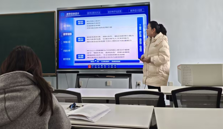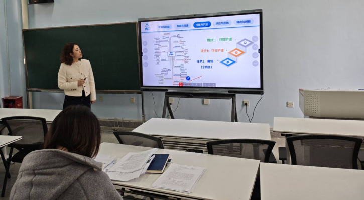 第一组选手由李兰老师主讲,以“任务驱动・技术融合 思政浸润・能力导向”为核心理念,带来了题为“新医科背景下《基础护理学》教学创新设计”的展示。该方案紧扣新医科发展要求,巧妙地将信息技术与护理实践相结合,通过真实任务驱动学生学习,并在教学全过程自然融入课程思政元素,着力培养学生的综合职业素养与实践能力,体现了对基础护理学教学的深入思考与创新探索。