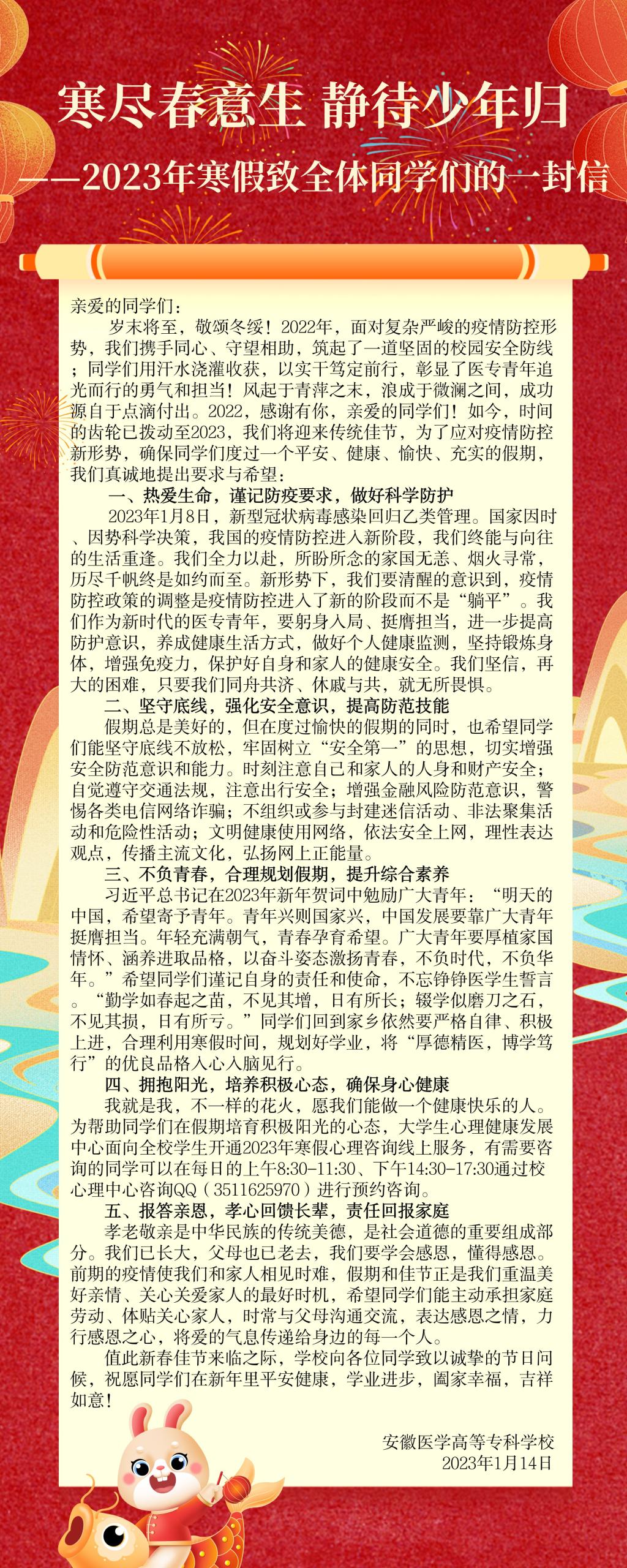 寒尽春意生 静待少年归——2023年寒假致全体同学们的一封信