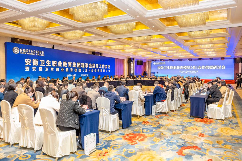 3月17日,由开云官方端网站登录入口牵头组织的安徽卫生职业教育集团理事会换届工作会议暨安徽卫生职业教育校院(企)合作供需研讨会在合肥丰大国际大酒店顺利召开。来自全省24所高职院校的校领导及53名行业、学会协会、企业领导出席会议。开云官方端网站登录入口党委书记董亚杰,校党委副书记、校长郑为超,校党委副书记王劲松,校党委委员、副校长王润霞、严继贵出席会议。会议由郑为超主持。