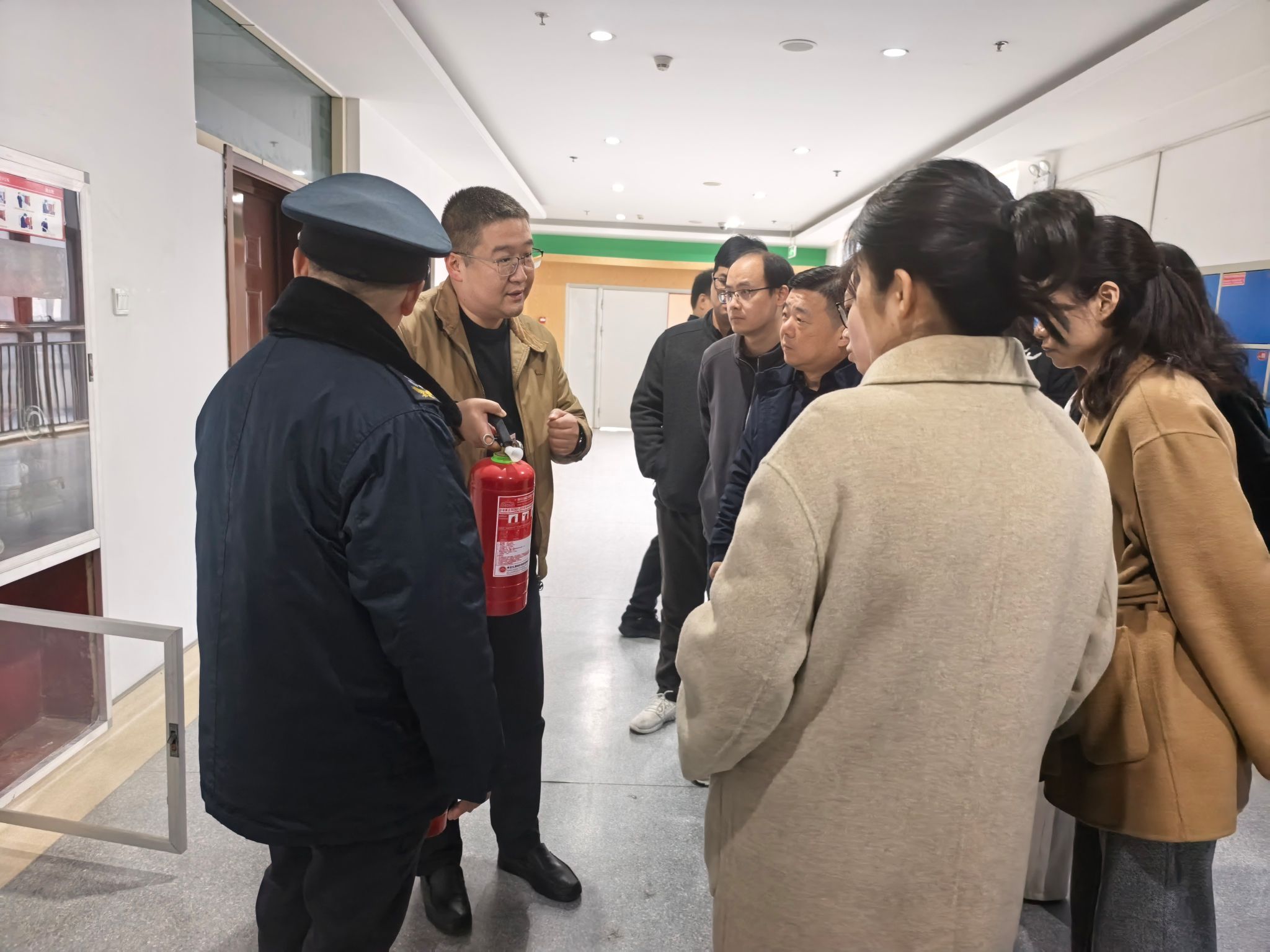 在消防安全专项检查环节,检查小组着重查看了消防安全通道是否畅通无阻,消火栓、安全指示标志、应急照明灯、灭火器等消防设施是否配备齐全、性能完好。同时,工作人员结合现场实物,向馆员们系统科普了灭火器材的正确使用方法,详细讲解了火灾突发时的应急处置流程与逃生自救要点,对排查中发现的潜在隐患进行现场记录,并当即部署整改措施。