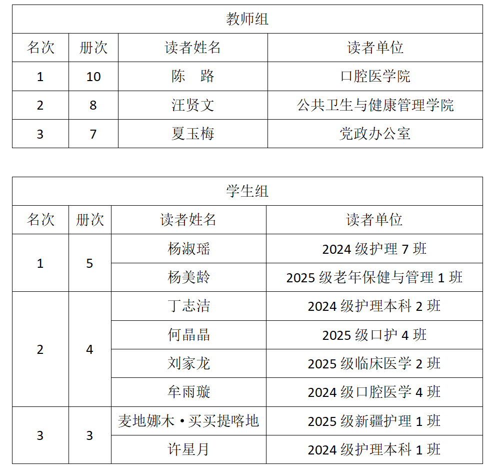 为进一步促进书香校园建设,倡导优良的校风、教风、学风。图书馆根据读者月度借阅量排名,现将2026年1-2月“阅读之星”名单,公布如下: