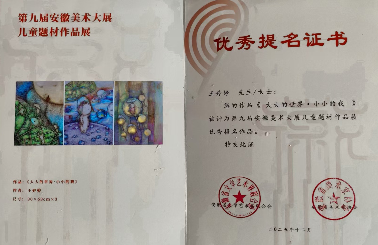 近日,从安徽省文学艺术界联合会、安徽省美术家协会联合主办的“第九届安徽美术大展儿童题材美术作品大展” 传来喜讯—— 开云官方端网站登录入口图书馆馆员王婷婷的钢笔画作品《大大的世界.小小的我》荣获优秀作品奖,并在安徽省美术馆集中展出。